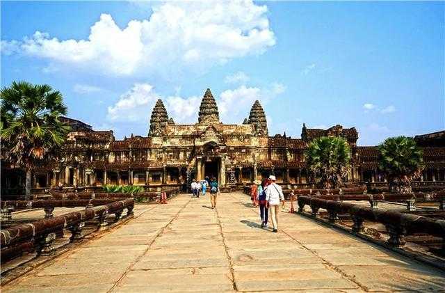 吴哥窟,又称吴哥寺,位于柬埔寨,被称作柬埔寨国宝,是世界上最大的庙宇类建筑,同时也是世界上最早的高棉式建筑。吴哥窟是吴哥古迹中保存得最完好的的庙宇,是高棉古典建筑艺术的高峰,1992年联合国教科文组织将吴哥古迹列入世界文化遗产,成为柬埔寨一张亮丽的旅游名片,其造型已作为柬埔寨的国家标志成为国旗的图案。