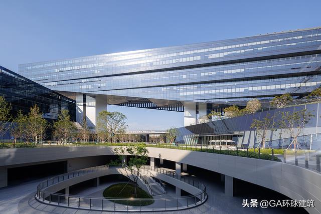 建筑立面采用双层幕墙系统,外层白色穿孔金属板可随阳光角度智能调节。屋面集成约2万平方米光伏板,预计可满足园区年用电量的20%,实现了绿色能源的高效利用。