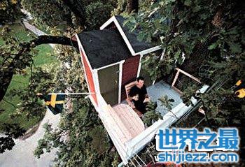 啄木鸟旅馆位于瑞士 Vesteras, 是世界上最小的旅馆,只能容纳一到两个人。它坐落于一颗大树上面,离地约30英尺,食物都是通过篮子吊上去的。别看它小,啄木鸟旅馆也有独立的厨房、阳台和厕所。