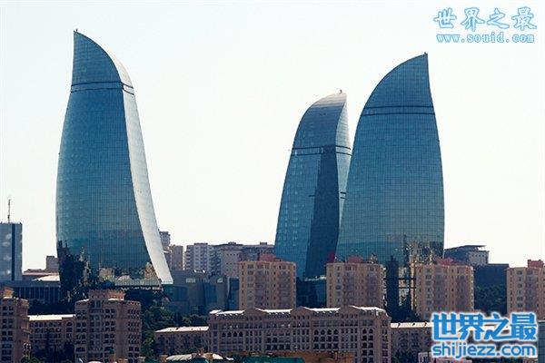 阿塞拜疆最高建筑——火焰塔由三幢火舌造型的大楼组成。