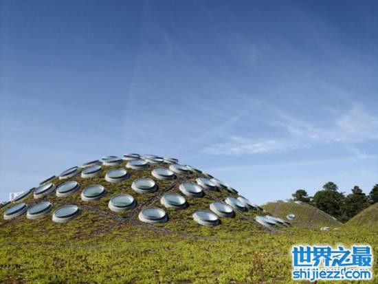 加州科学院是世界上最环保的科学馆,更不可思议的是它是建造在世界最频繁地震带上的建筑。号称是世界上最大的四合一博物馆,即水族馆,天体馆,雨林馆和自然历史馆。有意思的是科学院拱起来的圆球屋顶,除了用来采光和发电的玻璃太阳能板以外,全部种上了植物,整个顶就是个原生态花园。这个圆形顶盖实际是热感应控制,如果这两个馆里的温度过高时,顶盖会自动打开。
