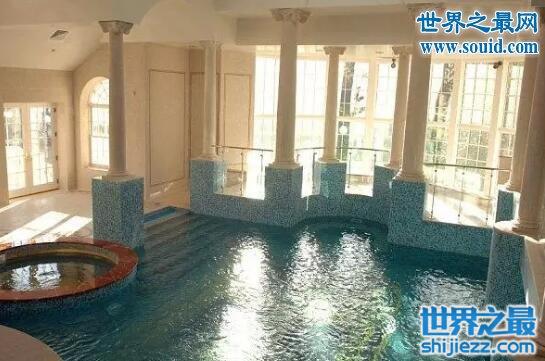 2、作为世界上最豪华的别墅当然不能少了泳池,两幢客房的顶层各有两间卧房、厨房以及按摩浴缸,另外还有一个带有巨大泳池的露台、主人房里配有一部电梯通往楼下的泳池、另外还有8间带浴室的套房。
