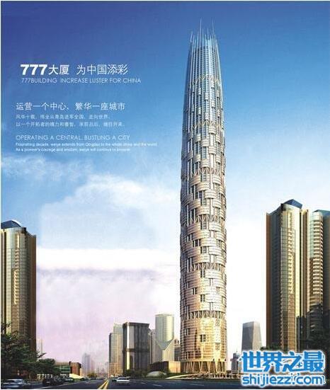 777大厦是青岛伟业集团旗下九天投资有限公司斥资100亿元人民币,鼎力营建的世界级地标性建筑,建筑高度拟在700米以上,项目位于青岛开发区,总建筑面积55万平方米,致力打造中国第一高楼,其建筑功能包括:顶级写字楼、酒店式公寓、顶层观光厅、金融中心裙楼等。