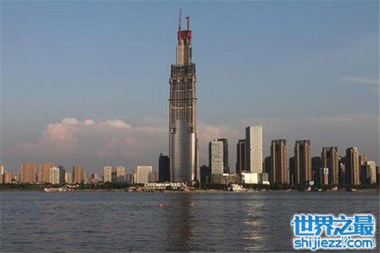 武汉绿地中心本来应该在17年就计划建成的,但至今仍没有建成,好像还被限高了,所以高度没有原计划的那么高,但是好像也有五百多米,这是一栋集写字楼,办公与酒店以及商场为一体的大厦。