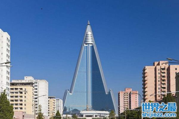 柳京饭店位于朝鲜首都平壤,是朝鲜境内最高的建筑,也是世界第一大金字塔型结构建筑。柳京饭店设计初衷是让它从任何一个方向看去都像是一个金字塔的造型,是一个三栋对接的高楼建筑,不过这座大楼楼体非常单薄,让人看上去非常奇怪,没有经验壮观的感觉。而且因为一些原因认这座从1987年就建造的大楼至今都没有完工,由于资金和电力的缺乏,成为了朝鲜最大的烂尾楼。