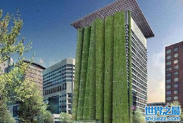 波特兰大厦是为了响应环保的理念设计出的一座建筑物,几条绿色草坪从大楼顶端一直覆盖到了地面,让整个大厦成为了一个立起来的草坪,虽然这座大厦的设计初衷是好的,但是把草简单粗暴的种在一座大厦表面,没有任何美感可言,是全球10大最丑建筑之一。