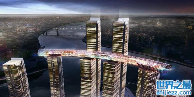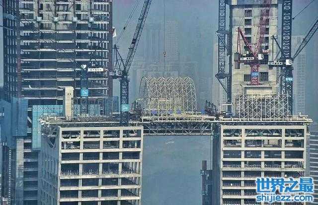 重庆的来福士整个是由八栋高层建筑所构成的,长300米,宽30米,高22.5米,在它的下方是由四座高达250米的建筑组成,就像是一座桥梁一样。不管是大楼的高度,还是宽度,都在世纪范围内创造了一个新的记录。