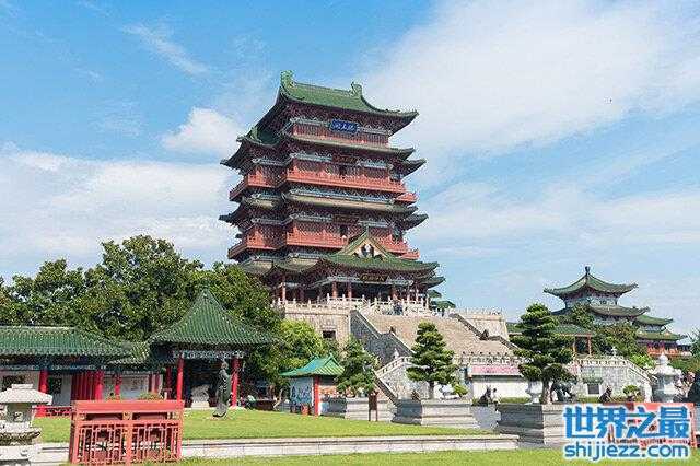 滕王阁位于江西省南昌市东湖区,始建于唐永徽四年(公元653年),因唐太宗李世民之弟——滕王李元婴始建而得名,又因初唐诗人王勃诗句“落霞与孤鹜齐飞,秋水共长天一色”而流芳后世。滕王阁与湖北武汉黄鹤楼、湖南岳阳楼并称为“江南三大名楼”,是中国著名城市古建筑、中国古代四大名楼之一,“中国十大历史文化名楼”之一,世称“西江第一楼”。滕王阁现存建筑为1985年重建的,主体建筑面积占地一万多平方米,高达五十七点五米;其采取独特“明三暗七”格局,台座以上的主阁是三层带回廊建筑,内部共有七层,分为三个明层、三个暗层及阁楼。