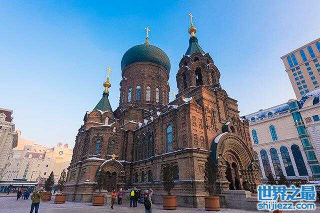 圣·索菲亚教堂坐落于黑龙江省哈尔滨市道里区,始建于1907年,是一座典型的拜占庭式东正教教堂,气势恢弘,精美绝伦,为第四批全国重点文物保护单位、哈尔滨的标志性建筑,亦是中国最美基督教堂。圣索菲亚教堂闻名于其巨大的圆顶,远看就像俄罗斯化的洋葱头。外形古朴典雅,让人挪不开眼球。而中央大街,旧称中国大街,同样位于哈尔滨市道里区,全长1400米,与圣·索菲亚教堂步行只有750米的距离。这条长街始建于1900年,街道建筑包罗了文艺复兴,巴洛克等多种风格的建筑71栋。可以说哈尔滨圣索菲亚教堂和中央大街都是构成了哈尔滨独具异国情调的人文景观和城市风情,亦是哈尔滨城市地标性古建筑。