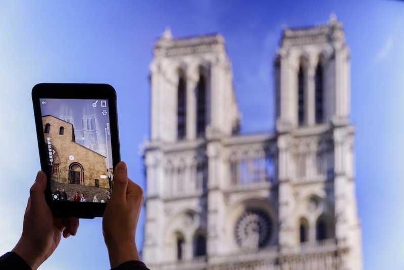 观众可以通过平板电脑了解巴黎圣母院的建造技术