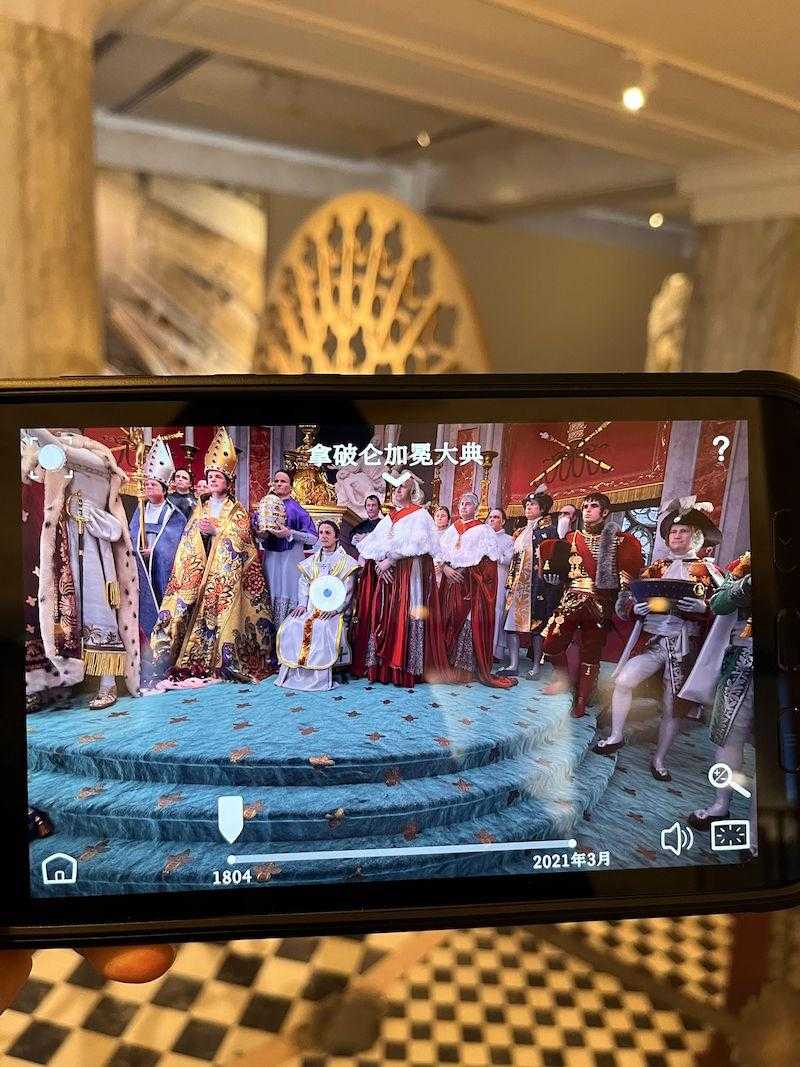 展览现场,通过平板电脑观看巴黎圣母院的历史
