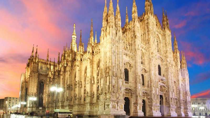 米兰大教堂(Duomo di Milano),坐落于意大利米兰市中心的广场,是世界上最大的哥特式教堂。[2]其性质为天主教堂,名列世界五大教堂。米兰大教堂于1386年开工建造,1500年完成拱顶,1774年最高的哥特式塔尖上的La Madonnina(镀金圣母玛丽亚雕像)由Giuseppe Perego建造,是米兰市的象征。整个教堂1965年完工,历时五个世纪。拿破仑曾于1805年在米兰大教堂举行加冕仪式。