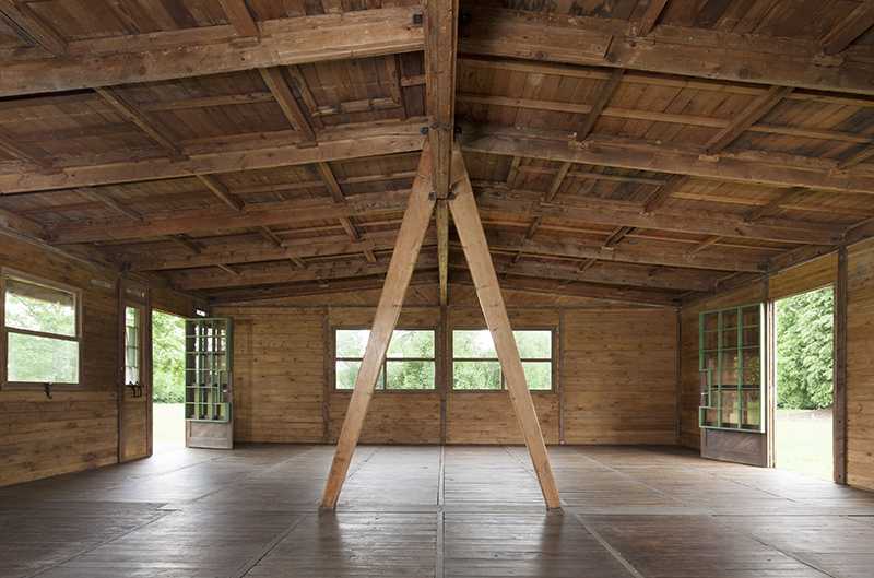 Pavillon 8x8m,Permali Company,是普鲁维1946年的作品,这处装配式住宅同时也预示着普鲁维开始进入预制钢结构建筑领域,随后他与其他建筑师合作,设计了诸多装配式住宅。普鲁维是预制钢结构建筑的先驱。1939年,他便独自为军方设计了可拆卸的军营。这些住宅的早期平面为6x6m,随后改为8x8m,整个房子只有中央设有一组立柱,周围的墙壁以及所有钢结构受力件都是预制件装配而成。