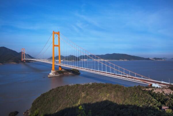 西堠门大桥是位于西堠门水道之上的跨海大桥,是甬舟高速公路组成部分之一,于2005年动工兴建,2009年通车运营,这条总长达2.588千米,线路全长5.452千米,设计速度达80公里每小时。