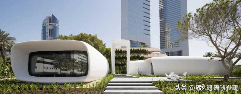 迪拜未来基金会(阿联酋)于2020年2月20日在迪拜建造了第一座3D打印商业建筑。使用了一台20英尺高、120英尺长、40英尺宽的3D打印机将这座建筑打印出来。她被命名为“Office of the Future”,优美的弧线和大胆的设计仅用了17天打印出来,并在两天的时间内组装完成,占地约250平方米,堪称3D打印领域一个质的飞跃。