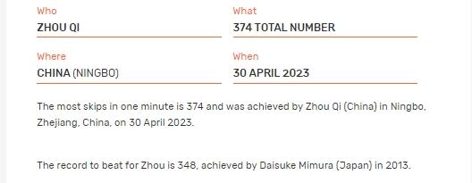 🤩浙江16岁少年周琦跳绳60秒单摇374次,打破吉尼斯世界纪录