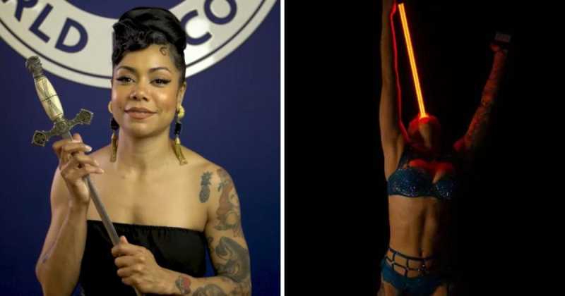 来自美国的Heather Holliday吞下了最长的霓虹灯管(54.40厘米),她还玩过更危险的物体。