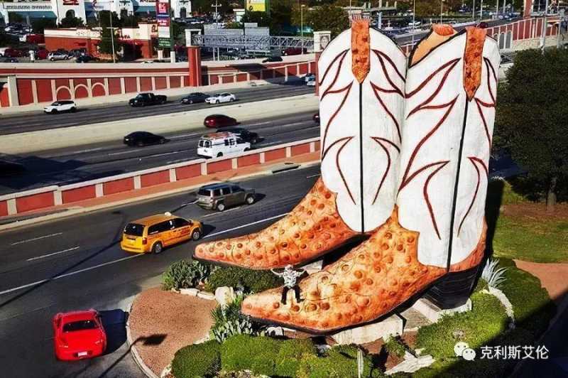 这双高达十米的靴子被放在美国得克萨斯州的一家牛仔专卖店的门口,而且店家承诺,谁能把这双靴子穿走,就把它免费送给谁。