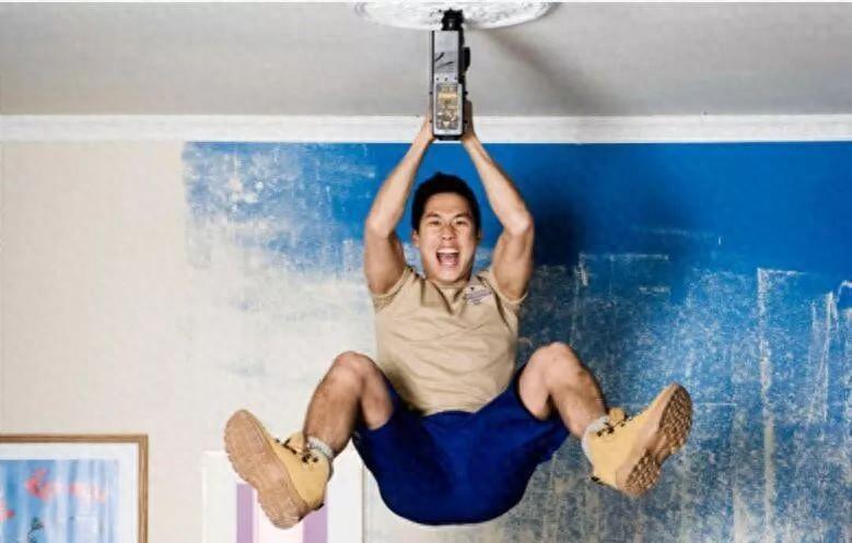 德国的Huy Giang仅凭上肢力量挂在电钻上,在一分钟内转了148圈