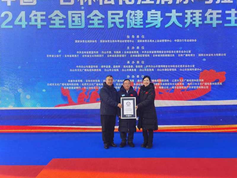 1月30日,首届中国·吉林松花江滑冰挑战赛暨2024年全国全民健身大拜年主会场活动中,中国吉尼斯认证官吴晓红女士宣布,本次滑冰马拉松挑战赛荣获“最大的滑冰系列赛吉尼斯世界纪录”称号。