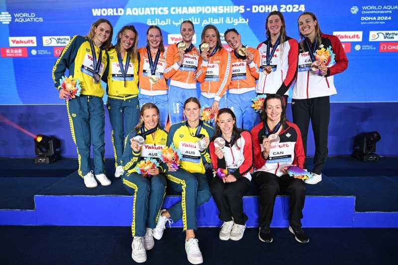 前半程垫底的荷兰队凭借基拉-图桑特(Kira Toussaint/53.81)和马瑞特-斯滕贝亨(Marrit Steenbergen/52.35)的冲刺笑到最后,压轴登场的斯滕贝亨游出了52.35的全场最快分段成绩
