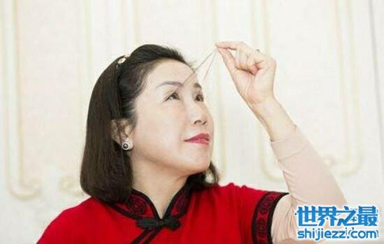 来自中国江苏省常州市的尤建霞的睫毛被认为是世界上最长的睫毛,你可能会问,能有多长呢,我们人类的睫毛一般为8~12mm,长长的睫毛能够让人的眼睛很精神很漂亮,这是大多数美女最想要的,但是你有想过睫毛超过十厘米是什么样子的吗,会不会洗脸和吃饭都会有障碍呢,来自江苏的尤女士睫毛长达12.4厘米,长长的睫毛也是很飘逸啦!所以她的长长的睫毛也是获得了世界上最长的睫毛的吉尼斯世界纪录。