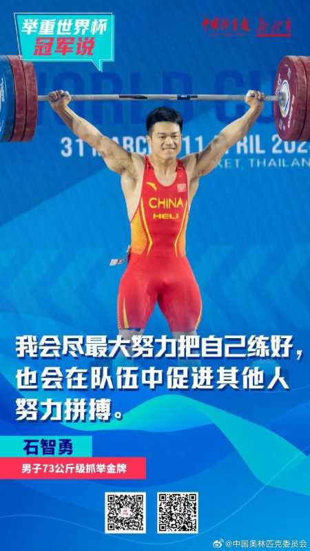 石智勇收获了男子73公斤抓举金牌,李发彬收获了男子61公斤抓举、总成绩金牌,刘焕华收获了男子102公斤挺举、总成绩金牌。