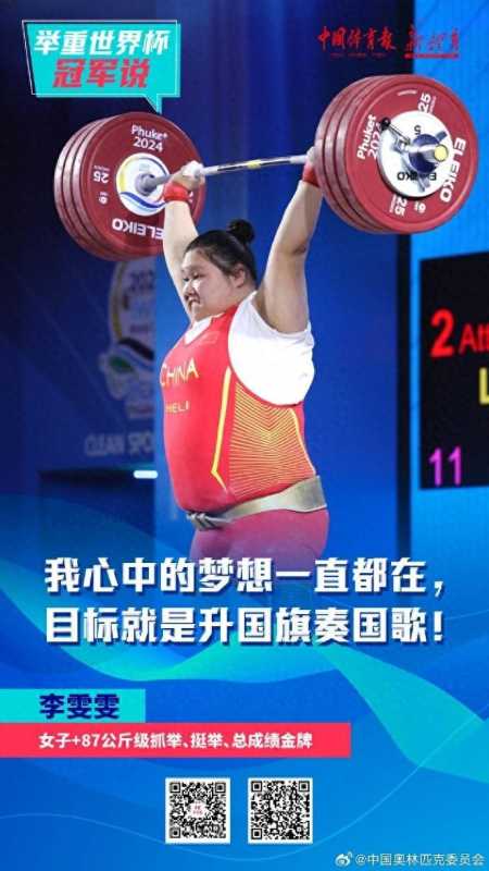 其中,李雯雯收获了女子87公斤以上级抓、挺、总三枚金牌。