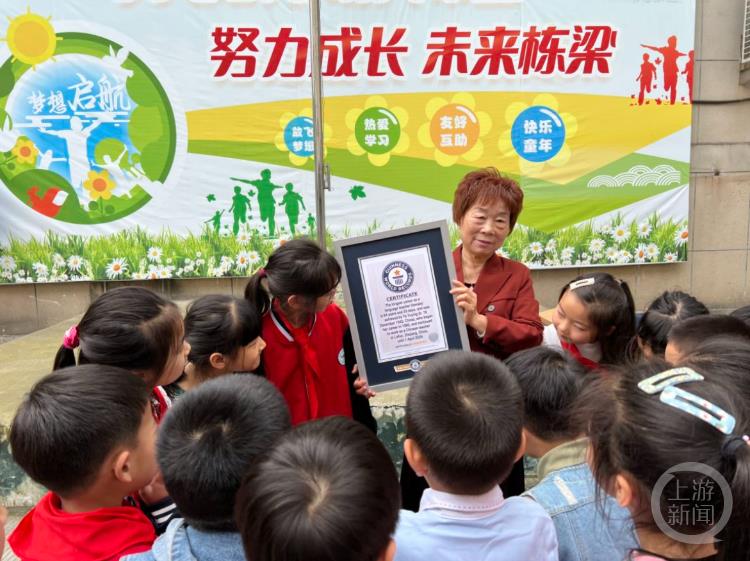 叶玉英老师向学生展示自己的吉尼斯世界纪录。受访者供图