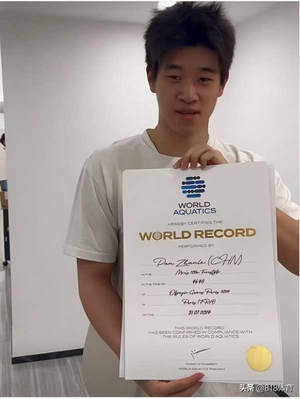 凡尔赛!潘展乐晒收到100自世界纪录证书:这是第2个 已经不稀有了