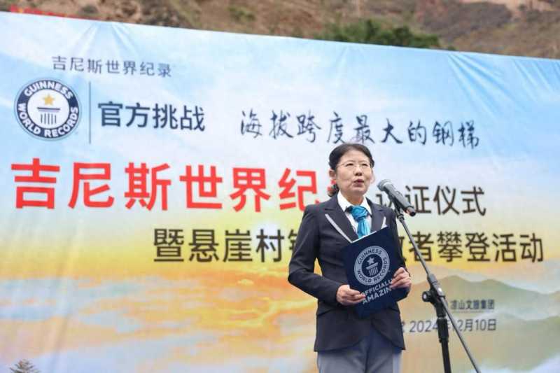 “昭觉县悬崖村的悬崖钢梯,海拔跨度达370.1米,荣获‘海拔跨度最大的钢梯’吉尼斯世界纪录称号。”经过一系列核对、测量等流程后,吉尼斯世界纪录认证官吴晓红在现场宣布。