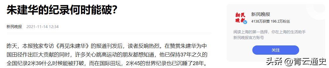 信息来源:2021年11月14日发表于新民晚报——《朱建华的纪录何时能破?》