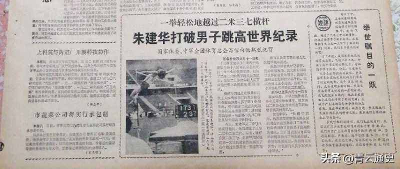 1983年,朱建华在全运会上,以2.37米的高度打破世界记录,紧接着又在决赛中,以2.38米的高度刷新了自己的记录。