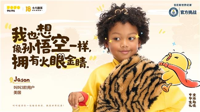 12月28日,一项全新的吉尼斯世界纪录™称号诞生,儿童成长数字内容平台叫叫在18岁生日之际,创造了“最多人参与的线上传阅一本书视频接龙”这一世界纪录。全球数百名儿童接力朗读《趣读西游记》,中华经典以新颖而独特的方式,传递到世界各个角落,彰显了中华优秀文化的恒久魅力。