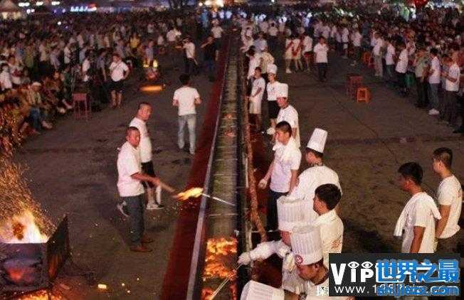 世界上最大的肉串 使用的铁串长度达1.73米(重达3000多斤)