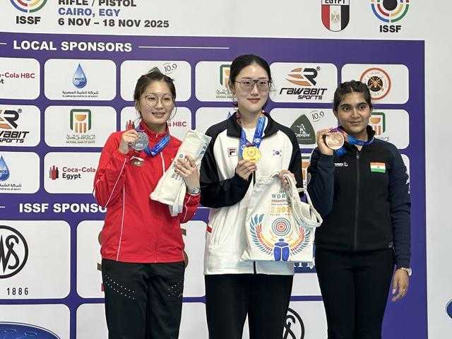 在奥运项目女子25米手枪决赛中,20岁的姚千寻最终获得银牌。比赛开局,韩国奥运冠军梁智仁迅速建立优势,姚千寻随后追至并列第一,两人一路紧咬比分。倒数第二组,梁智仁打出5中、姚千寻3中,分差由此拉开。最后一组两人均为4中,梁智仁以40中夺冠,姚千寻以两中之差摘银,印度选手辛格获得铜牌。