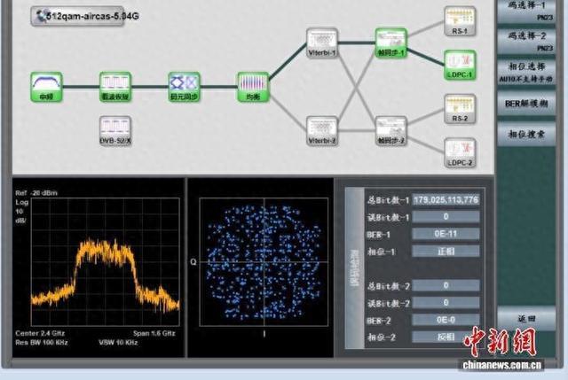本次实验的X频段双通道实验星座图及误码率情况。中国科学院空天院 供图
