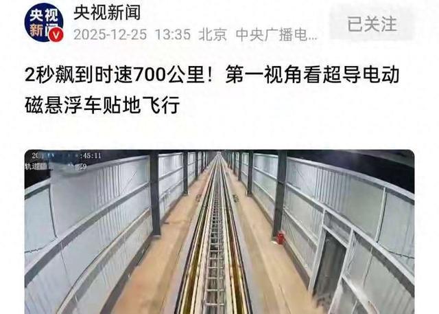 时间来到2025年年底了,我国磁悬浮技术团队又飙起了速度——12月25日和26日,磁悬浮科技圈上演了一场“速度接力赛”。《央视新闻》等媒体报道25日国防科技大学宣布在2秒内将吨级试验车加速至700公里/小时,刷新超导电动磁悬浮纪录。