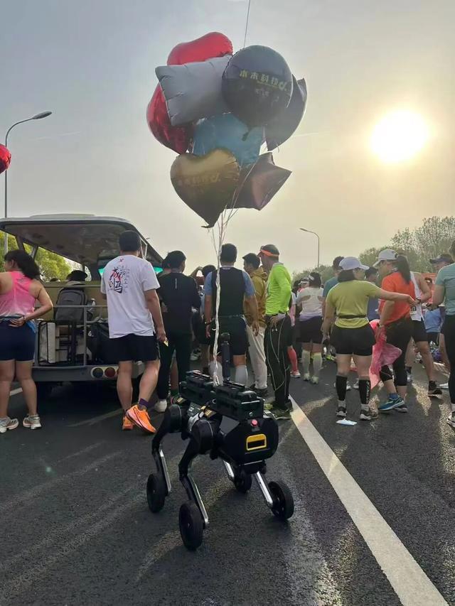 因此,在马拉松赛道之外,也出现了另一组“参赛者”。负责拍摄的摄影机器人;作为配速员护航的“关门兔”;清扫垃圾的清洁机器人;还有营造氛围的机器人啦啦队,它们不再追求速度,而是在真实环境中测试更多落地的可能性。