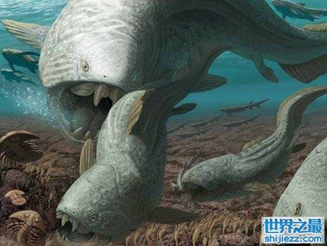 早在4亿多年前就有一种生物操控了海洋,它们就是泥盆纪时期的尖端掠食者邓氏鱼。它们是当时最大的海洋猎食者,就算当时鲨鱼以及出现,但是一看到邓氏鱼就只有逃跑的份。邓氏鱼体长抵达了11米,是和皇带鱼相同的硬骨鱼类,但是邓氏鱼是吃肉的。