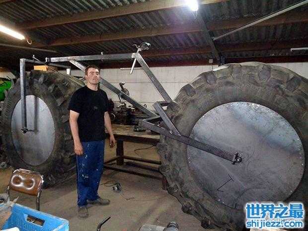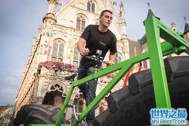 世界各地每天都在上演一些奇葩的事情,这不,比利时的一个小伙子就创造了一个吉尼斯世界纪录,那就是“世界上最重的自行车”,如下图所示,不要以为这是道具自行车,这辆自行车是可以骑行的。那么大两个车轮,光靠人力脚踏板,想想都蛋疼。