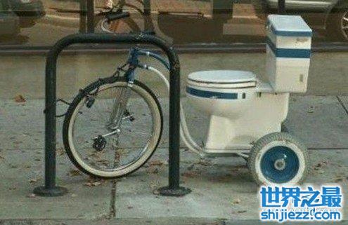 不知道为什么看到马桶,就让我想起了日本,这是日本独有的马桶自行车。
