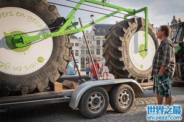 完全靠人肉脚踏的“怪兽”在Mechelen 街足足行驶了100米。