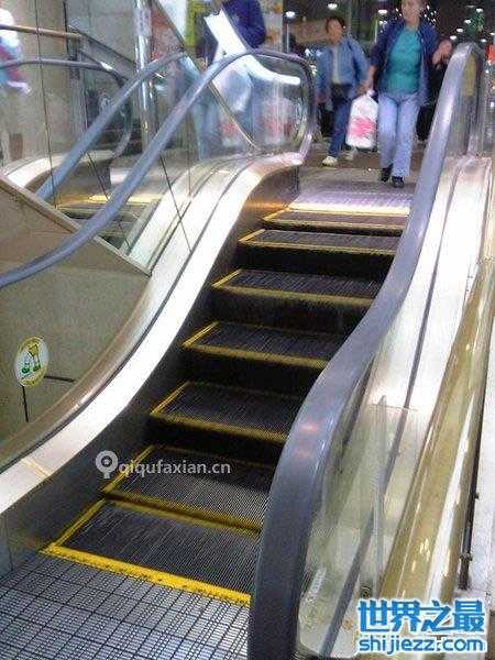 根据吉尼斯世界纪录。这个自动扶梯安装在日本川崎市一个百货公司内。这个自动扶梯仅仅只有5个台阶的路程,而且旁边还有一个固定的楼梯。