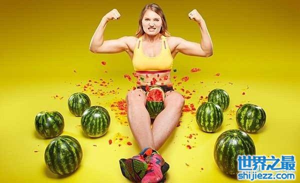 三、用双腿夹爆3个西瓜的用时最短纪录