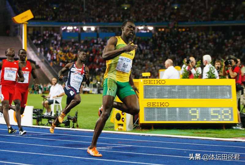 很难想象博尔特一个200米出身的运动员,能在百米这个副项取得奥运会3金、世锦赛3金1铜的伟大成就,三次打破世界纪录提升到属于另一次元空间的9秒58,无论是米尔斯教练还是博尔特本人,都深知9秒58不是极限纪录,博尔特的极限大概在9秒50到9秒55,这让当今只在9秒80左右徘徊的年轻选手远远脱帽致敬。