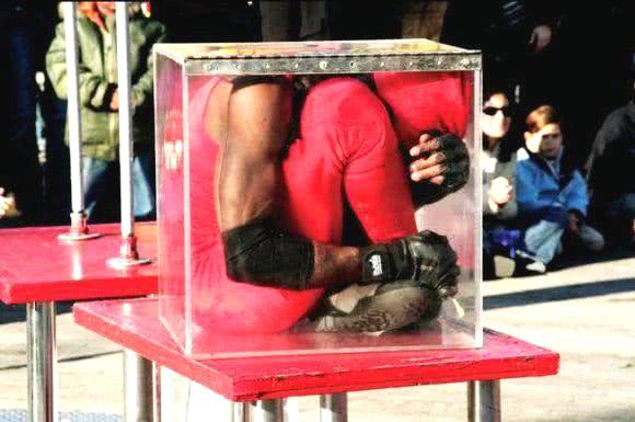男孩约吉·拉泽,仅耗时5.35秒就可以钻进一个50.8cm×50.8cm×44.4cm的箱子。