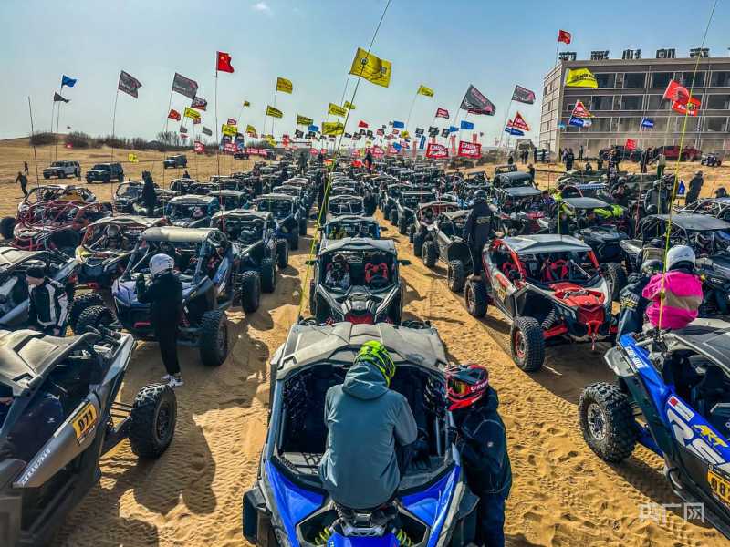 央广网鄂尔多斯4月2日消息(记者魏全民)4月1日,全国各地车手齐聚内蒙古鄂尔多斯市杭锦旗金沙岭景区,超百台全地形车穿越库布其沙漠,挑战吉尼斯世界纪录。
