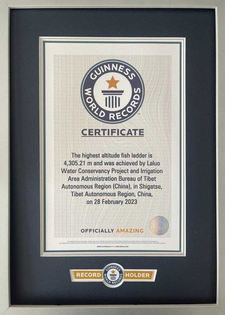 近日,长江委长江设计集团勘察设计的西藏拉洛水利枢纽及配套灌区工程鱼道获“最高海拔的鱼道”吉尼斯世界纪录称号,确认海拔为4305.21米。