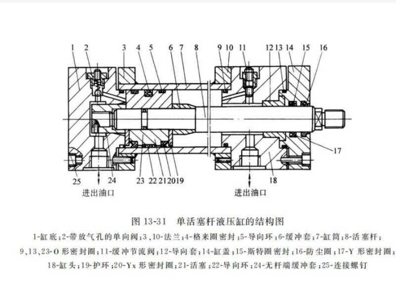 在液压缸中,活塞的工作原理也是基于活塞在缸筒内的往复运动来完成液压力的转换和执行作业的任务。
